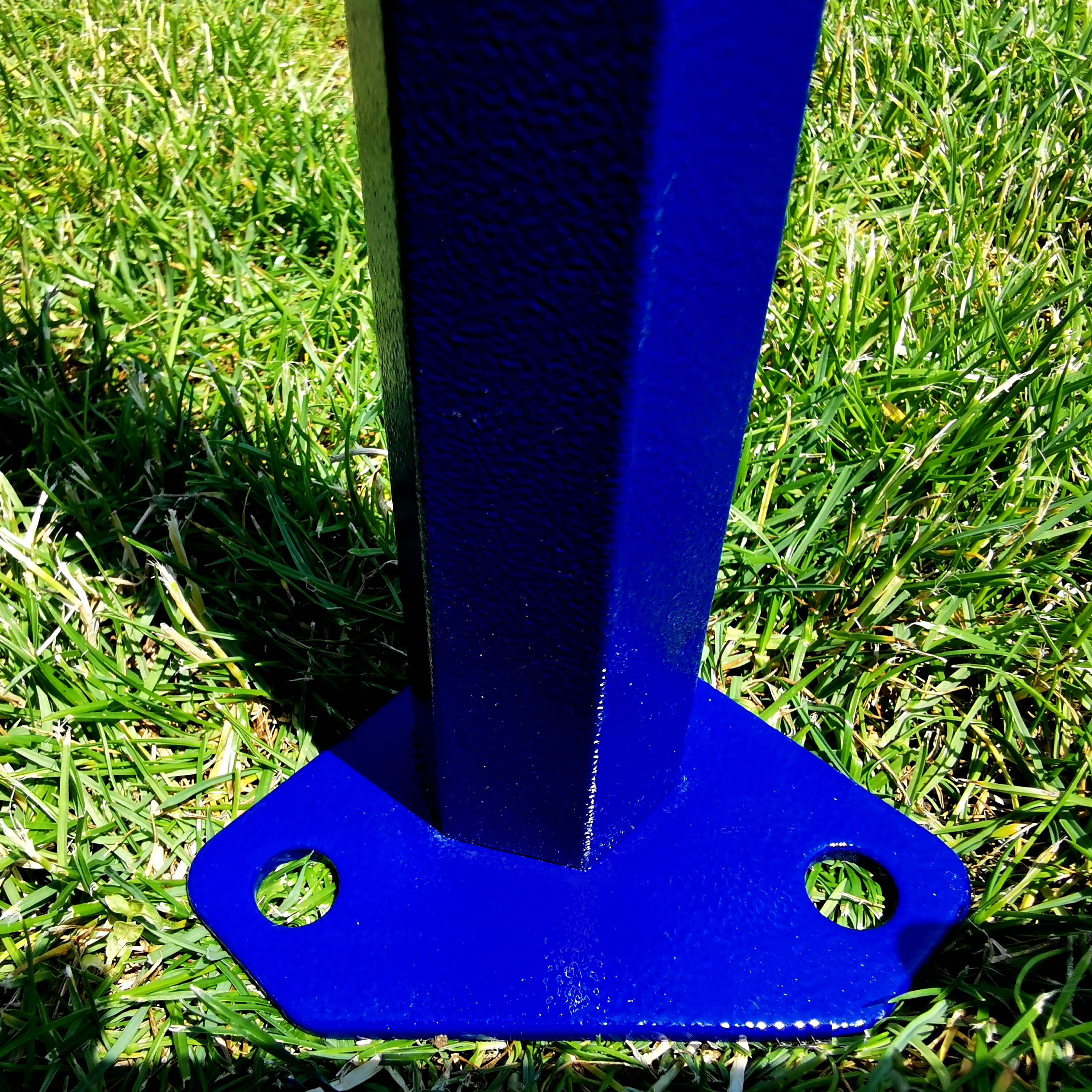 - Patins en acier : Pour un ancrage solide, ils ont 2 trous prévus pour les piquets (dimensions env. 100 × 150 mm).