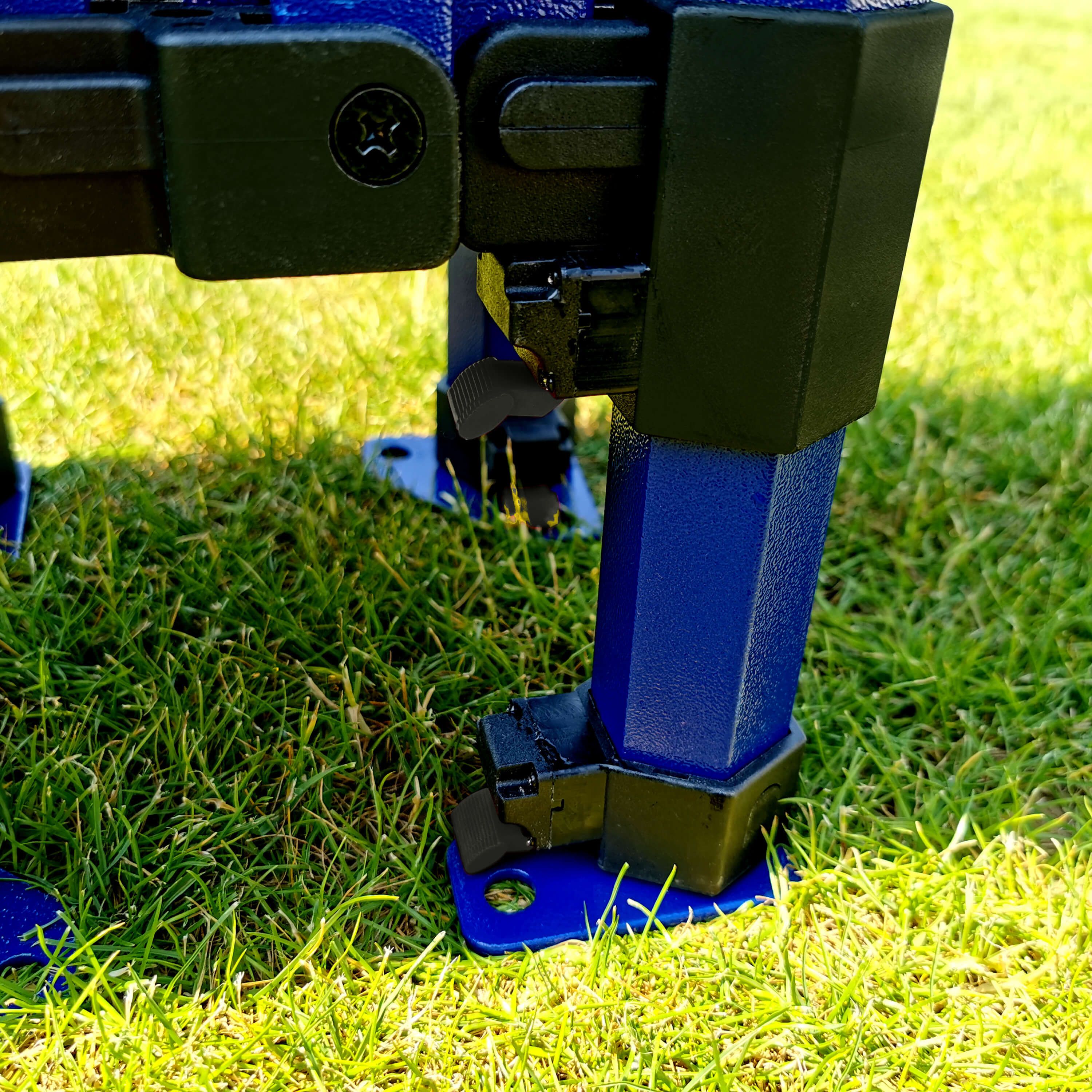 - Blocage sécurisé : Un verrouillage simple du mécanisme à l'aide de boutons pratiques avec goupilles en acier assure un blocage rapide et sûr du cadre.