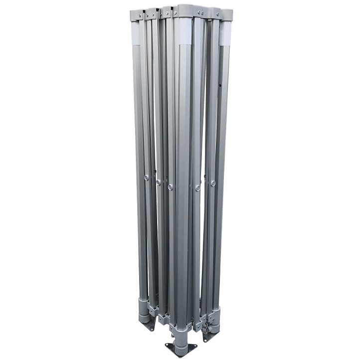 - Pieds hexagonaux massifs (45 mm) : Diamètre et profil de pieds haut de gamme combinés à une paroi en aluminium de 1,8 mm garantissent une stabilité excellente et une tenue inébranlable de la tonnelle sur tout site d'exposition.